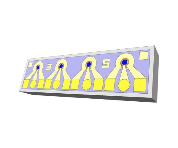 This high data rate 4X28Gbps NRZ/4X56Gbps PAM-4 photodiode chip is GaAs top- illuminated 1×4 Array PIN structure. Features is high responsibility, low capacitance and low dark current, active area size is Φ35μm, signal and both ground bond pad are design on chip’s top for easy wire-bond, application in 850nm 4X28Gbps/4X56Gbps PAM-4 short-range data optical communication.